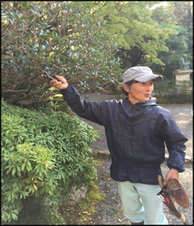 现场观摩了日本最大园林公司的园艺工作者修剪松树并详细讲述了他们的工作情况。