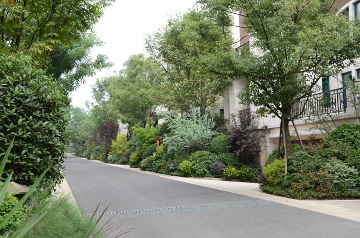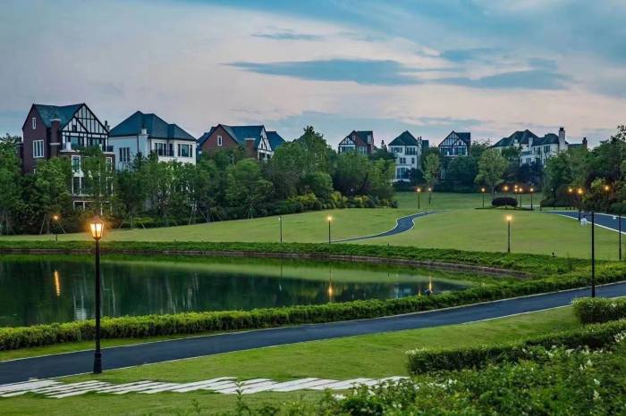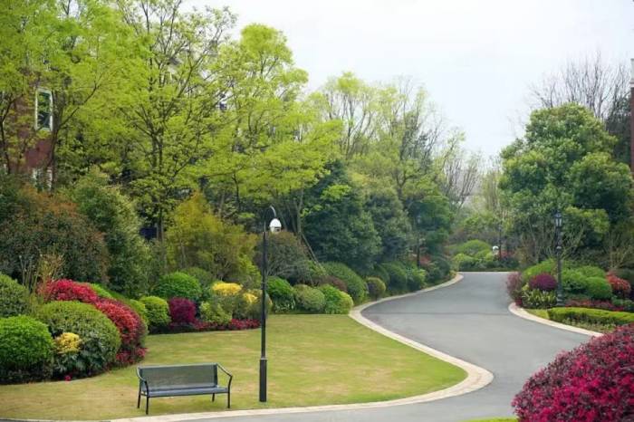 从车马喧嚣的都市进入墅区,广袤浅丘、白河、森林、湖景、大草坪,于湖光山色间领略至美景致,营造出休闲惬意生活气息。亭亭向上的香樟、朴树与入户的红继木、金合欢融为一体,使得空间氛围充满更多的韵律感和层次感,私而不密墅居空间,寻回自在从容而闲逸潇洒的自得心境,让居者归家即是一段旅程。
