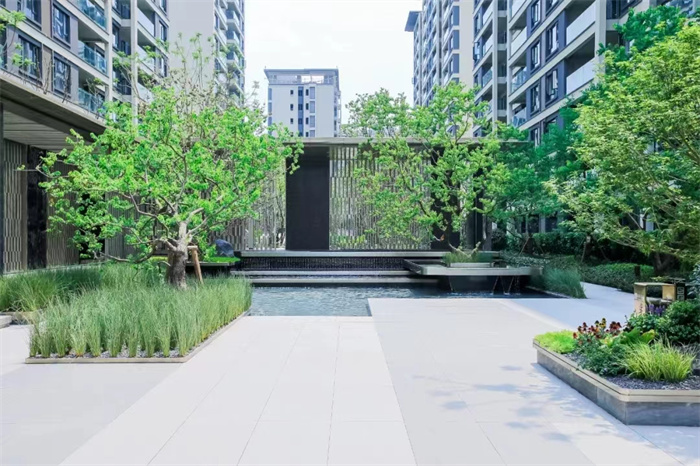 项目主打川西建筑特色,以独有的人文特性,将山水文化、庭院文化、书院文化融入现代生活住宅,韵味浓厚,有浑然天成之感。进入大门,入目即是艺术连廊——映水廊,廊架与水景结合,仿佛置身山野林涧之中。归家路线上,特别打造四季会客厅,亭外生态自然风光环绕,又是一番景致。入户花园空间,叠水景与木平台的巧妙结合,搭配大型乔木,营造出诗书余韵和闲暇逸致氛围。