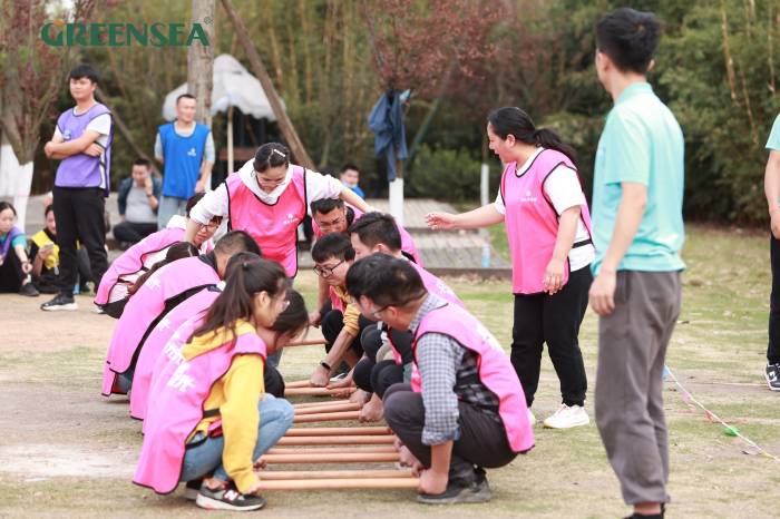 团队两两一组搭建浮桥,指派特定的队友交替前行。团队间齐心协力,一场速度的较量全面展开,矫健奔跑的身姿,配合默契的位移,彼此坚定的信任,队员们勇敢的步伐,迈过一根根细小的木棍,共同冲向胜利的终点。